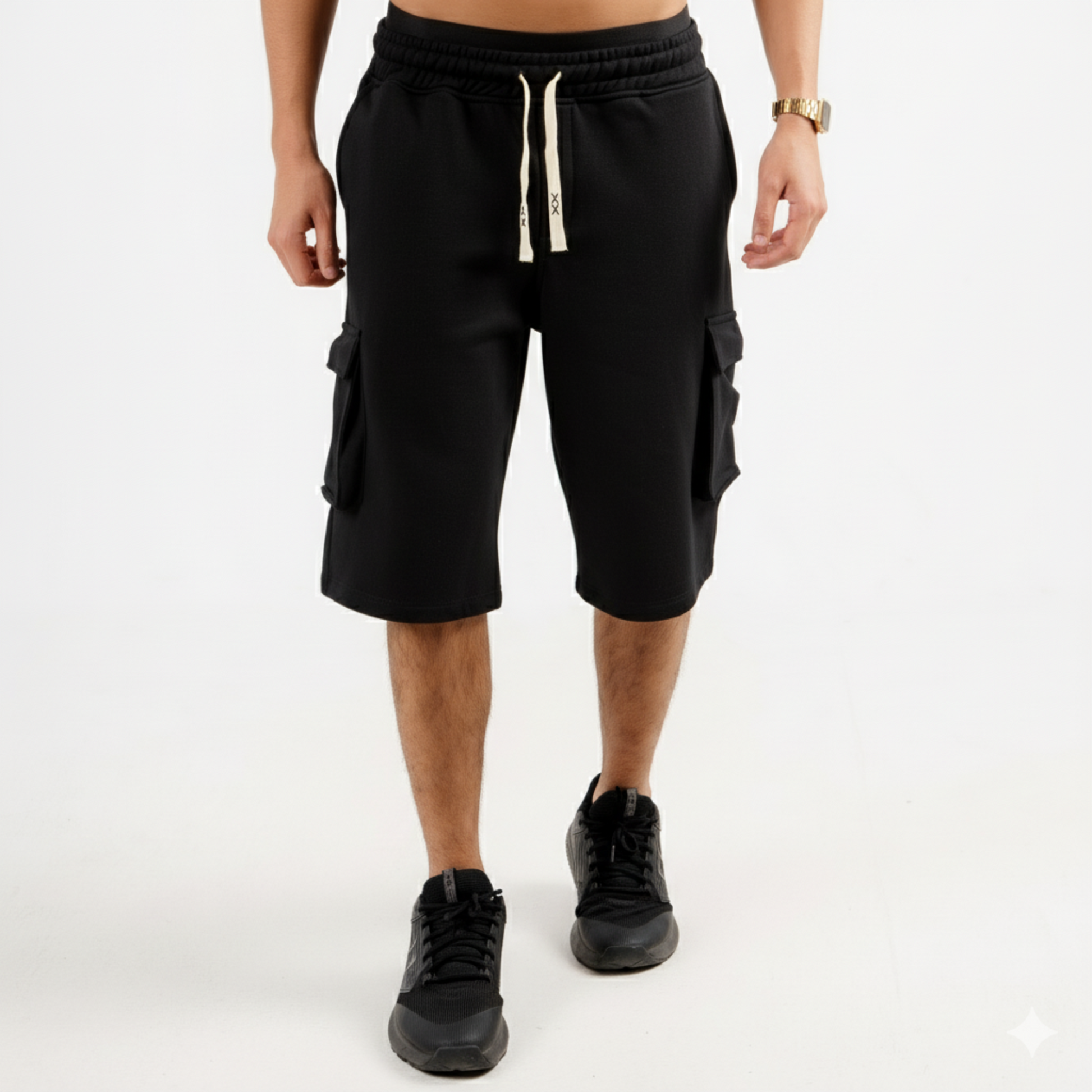 Clean. Minimal. Functional. The Core Black ESSNTL Cargo Shorts bring effortless streetwear energy with a relaxed fit and crisp cream drawstrings that pop against the deep black tone. Designed with 3D cargo pockets that add puff and structure, they keep the look sharp while giving you the utility you need. A core essential that nails the balance between everyday comfort and street-ready presence.